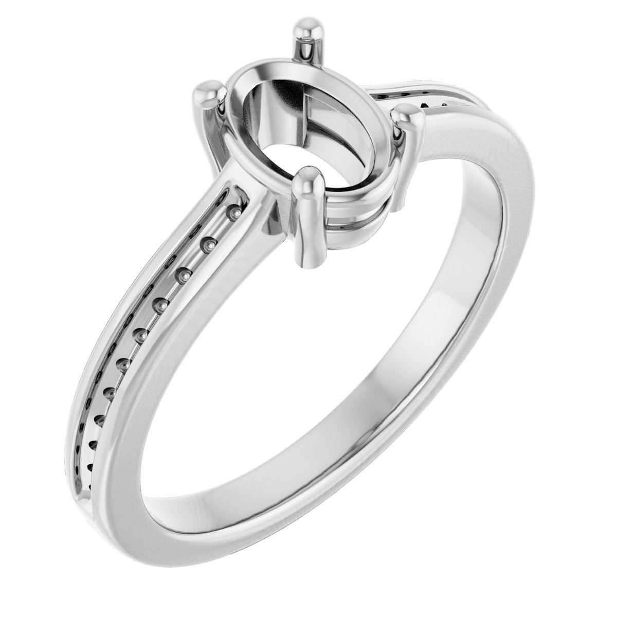 14K White 7×5 mm Oval Engagement Ring Mounting