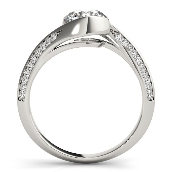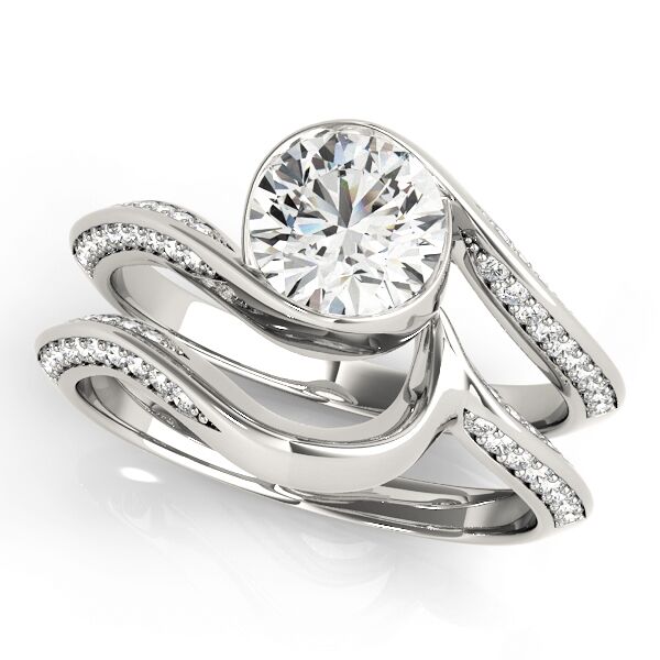 This 14K white gold product can accommodate a round diamond shape. Available in 14K, 18K white, yellow and rose gold, as well as Platinum. Center diamond not included. Matching wedding band sold separately.